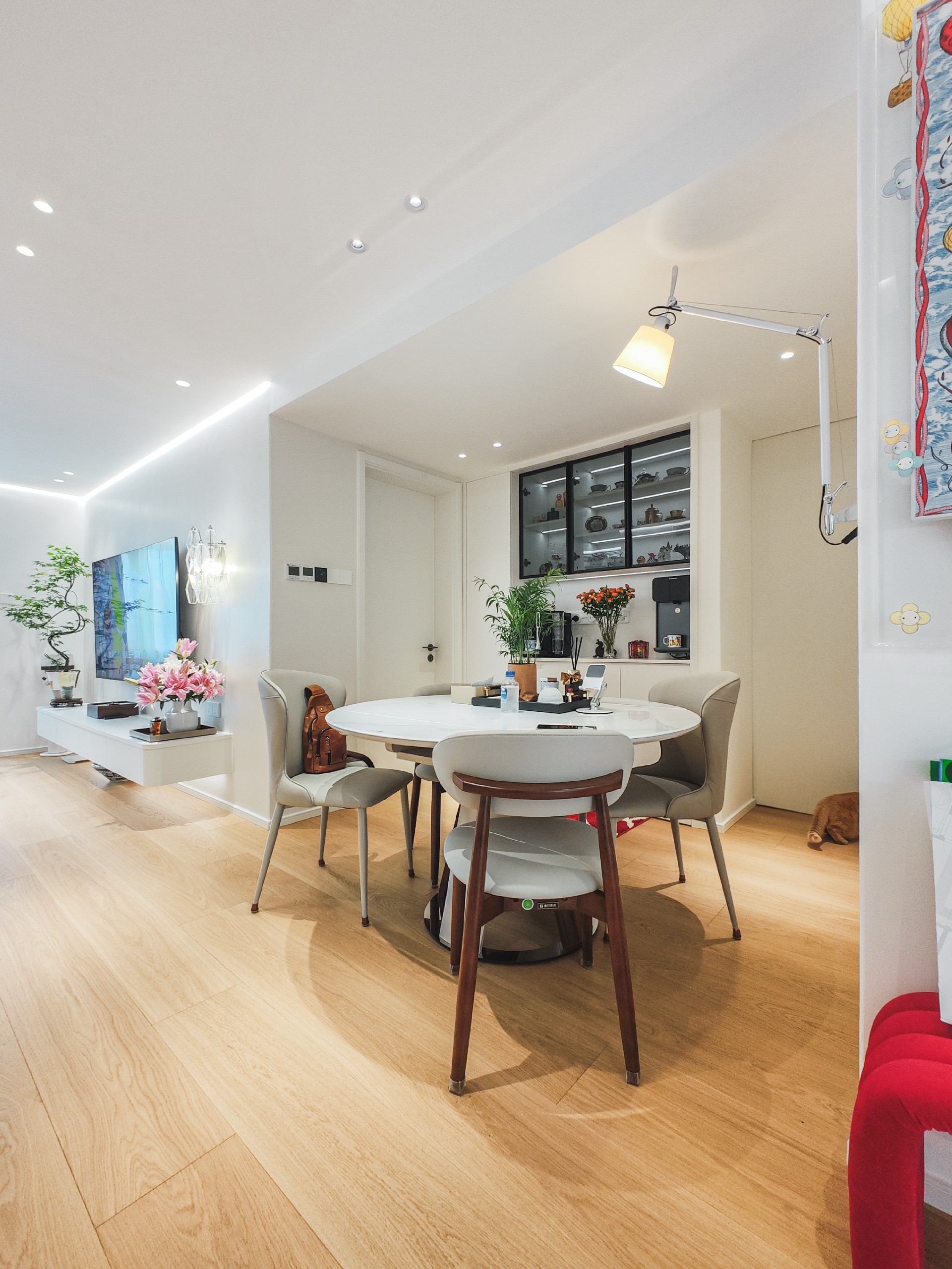 结合业主偏好,项目以日式风格为核心,营造简约自然的温馨氛围。原三房户型因仅老夫妻自住、女儿偶尔来访,设计师大胆优化布局,保留两间卧室,通过化繁为简的设计拓宽空间视野,契合老人对开阔动线的需求。