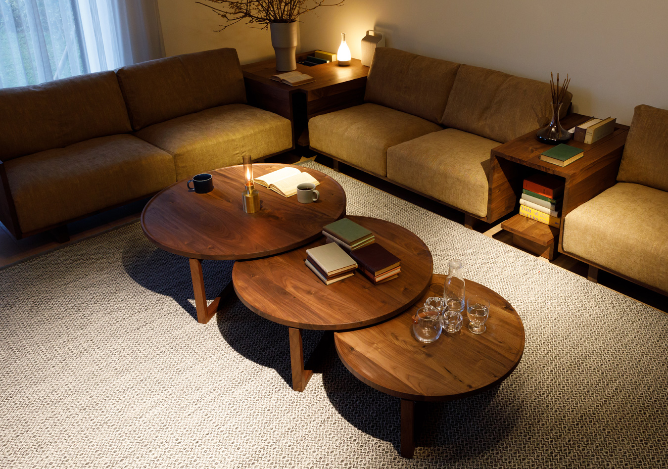 子母嵌套设计,一大一小错落组合,可分可合,适配不同空间场景:大桌承载书籍与杯盏,小桌收纳零碎好物,灵活满足日常置物需求。利落的框架结构搭配标志性黑榫卯细节,既稳固耐用,又暗藏东方木作美学,让每一处细节都成为空间里的精致注脚。