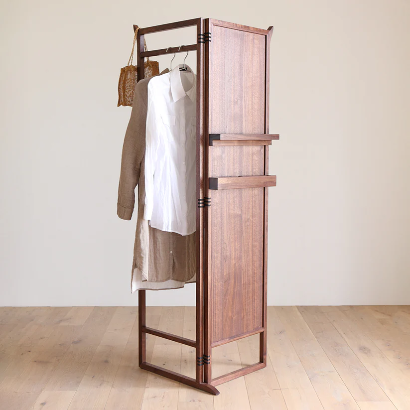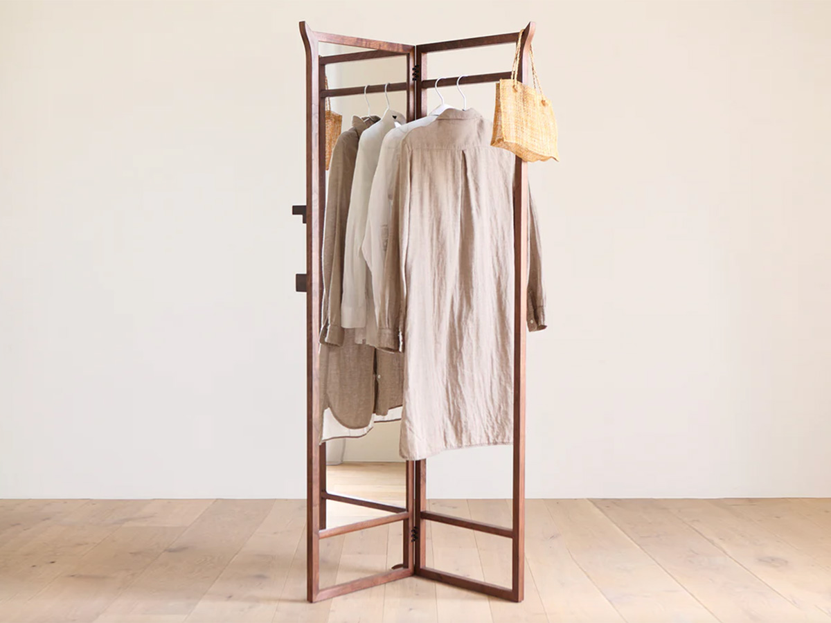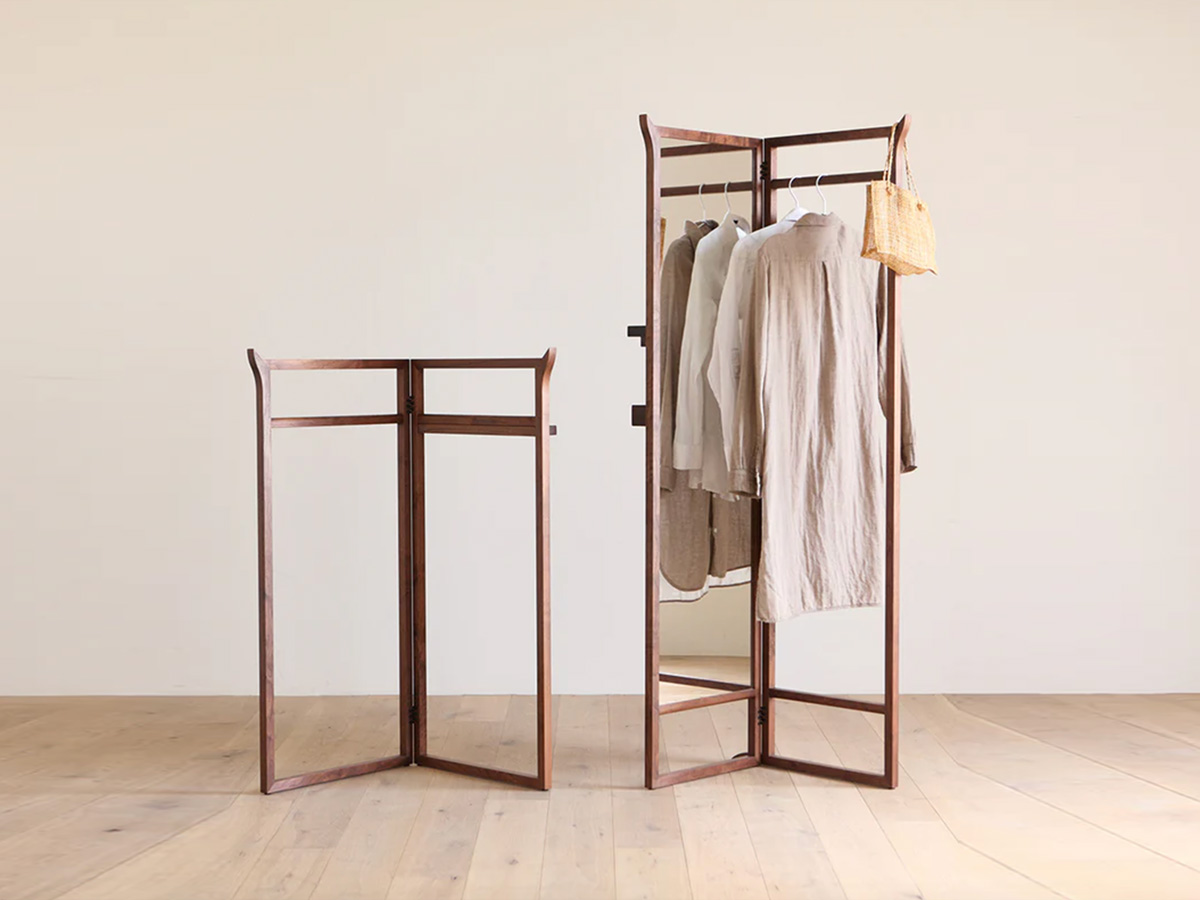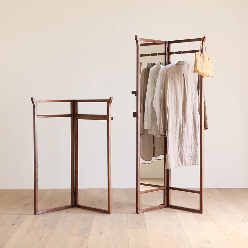 这件多功能衣架将穿衣镜、挂衣区与屏风功能完美融合。可折叠的双扇设计,展开是带全身镜的开放式挂架,衣物、包包随心悬挂,镜前从容穿搭;闭合后秒变简约屏风,遮挡空间同时,侧边置物杆还能随手挂放配饰,不占多余空间。